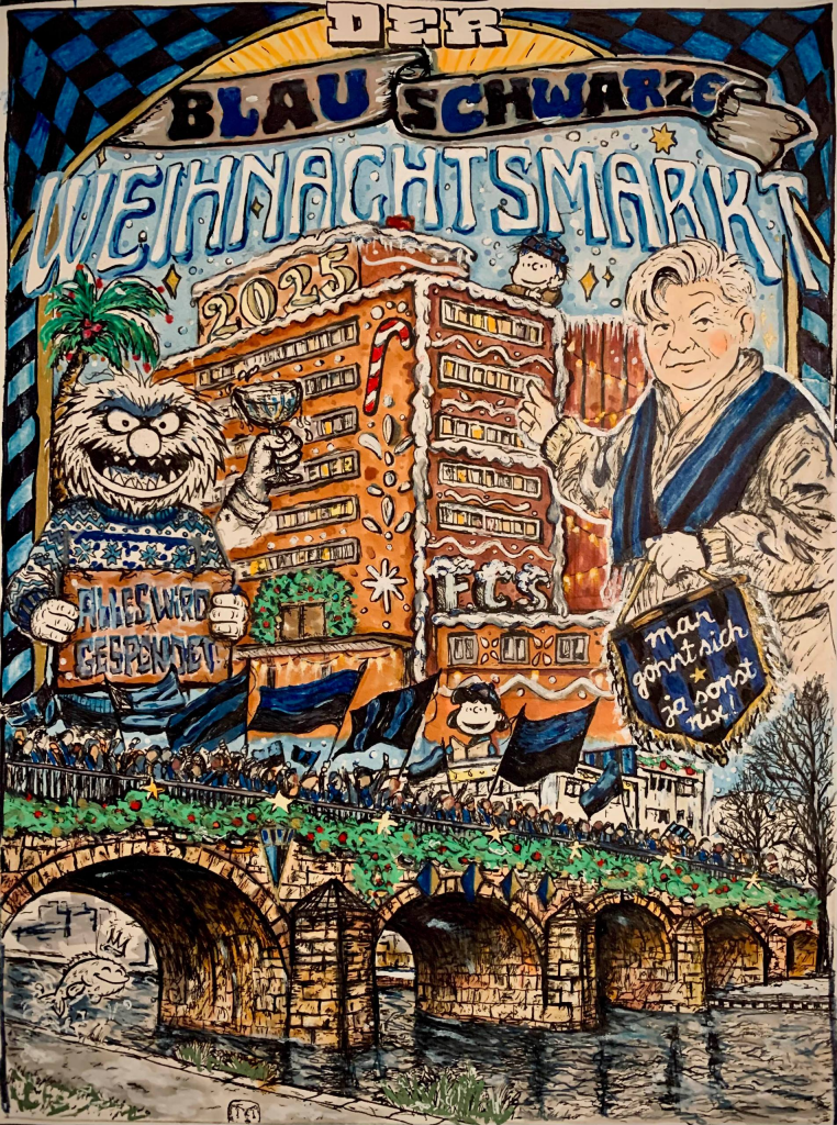 Dabei hielt die erste Jahreshälfte doch einiges bereit, was Hoffnungen auf eine bunte zweite Jahreshälfte wecken könnte. Das richtungsweisende Relegationsrückspiel zementierte stattdessen den Weg in die sportliche Depression. Bescheidene Voraussetzungen für das, was unsere Virage Est Veranstaltungsorga mit dem erstmals eigenen Stand auf dem Saarbrücker Altstadtfest, dem ausgeweiteten blau-schwarzen Programm auf dem Nauwieser Viertelfest und der riesigen Veranstaltung im E-Werk anlässlich des 20-jährigen Kurvenjubiläums plante und letztendlich mit euch allen gemeinsam unser Vereinsleben in eine noch intensivere und engere Beziehung brachte. Angesichts der Veranstaltungsfülle in diesem Jahr ist es nicht selbstverständlich, dass der blau-schwarze Weihnachtsmarkt 2025 in eine vierte Auflage gehen wird. Dennoch gehen wir diesen Weg gemeinsam weiter.